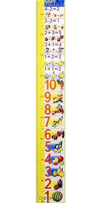 Забавный ростомер с красочными иллюстрациями поможет Вам следить за изменениями в росте вашего ребенка и будет способствовать малышу в изучении цифр и начала счета.