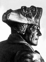 Фридрих II (24.1.1712, Берлин, - 17.8.1786, Потсдам), прусский король с 1740. Из династии Гогенцоллернов. Крупный полководец. Сын Фридриха Вильгельма I. Приступив в интересах прусского юнкерства к осуществлению планов широких территориальных захватов, Ф. II в итоге 1-й (1740-42) и 2-й (1744-45) Силезских войн захватил у Австрии большей частью Силезии, имевшей важное экономическое и стратегическое значение. Вступив в союз с Англией и напав на Саксонию, развязал Семилетнюю войну 1756-63; нанёс ряд поражений австрийским и французским войскам, но эти успехи были сведены на нет победами русских войск - только вследствие благоприятных для Пруссии политических обстоятельств она избежала полного разгрома (см. Семилетняя война 1756-63). В результате 1-го раздела Речи Посполитой (1772), которого Ф. II упорно добивался, Пруссия присоединила земли по нижнему течению Вислы. Укрепление армии было главной заботой Ф. II на всём протяжении его царствования.