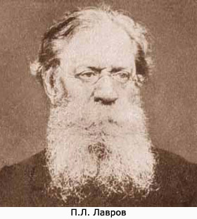Лавров Петр Лаврович (1823-1900 гг.) - идеолог пропагандистского крыла в народничестве. Окончил Петербургскую Артиллерийскую академию, преподавал математику в военных учебных заведениях. В 1862 г. сблизился с Н.Г. Чернышевским, стал членом общества "Земля и воля". Пользовался большой популярностью среди русских революционеров. В 1866 г. был арестован, с 1870 г. находился в эмиграции. В 1873-1876 гг. был редактором журнала "Вперед", в 1883-1886 гг. - "Вестника народной воли"